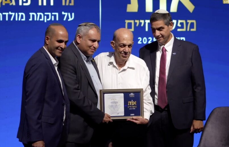 אות הוקרה לדוד פרג׳ון על הקמת מולדת – מתוך כנס ירושלים עוטף ישראל